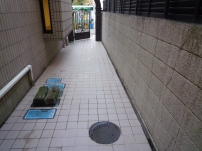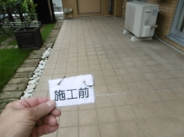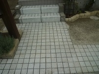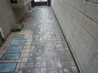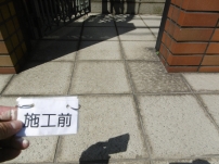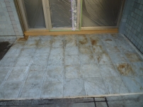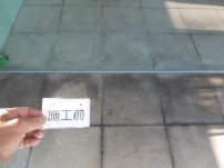 居住者の方が日常的に水をまいた結果汚れと水垢が固着し除去できなくなってしまった