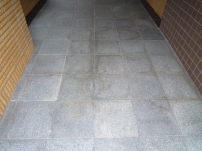 玄関石床汚れ除去作業