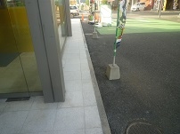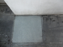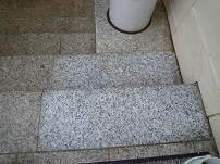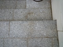 歩行頻度が激しいために汚れた御影石