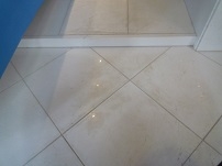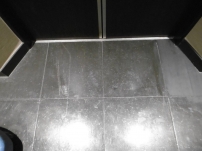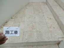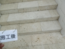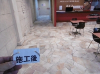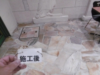 シミ抜き洗浄できれいになった石床。コーティング塗布したので今後メンテナンスし易いです。