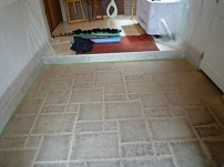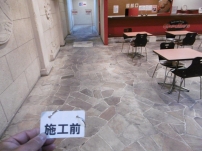 歩行頻度が激しく食べ物などを溢してしまい著しく汚れた乱張り石床