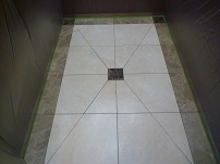シミ抜き洗浄できれいになった御影石床。今後汚れを付きづらくするために石床コーティングしました。