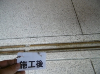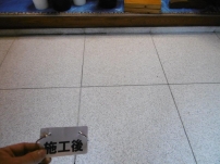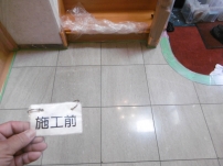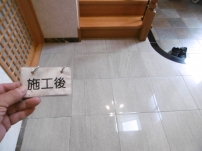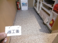 ポリッシャーで7、8回特殊洗浄後、取り切れなかった汚れをシミ抜き洗浄。 仕上げに抗菌剤入りの浸透性コーティング剤塗布。