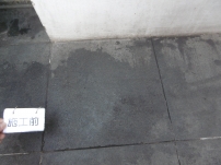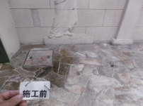 薬品等をこぼし、長期間適正な清掃を行わず劣化させてしまった石床。