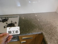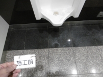 シミ抜き洗浄後、再生研磨、コーティングで原状回復し、その後清掃がし易くなったとの報告を受けている。