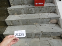 経年劣化で汚れた石床階段