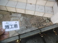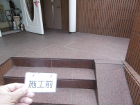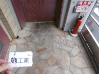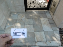 劣化した玄関石材のシミ抜き洗浄