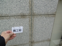 シミ抜き洗浄で原状回復した御影石壁。僅かなシミでも美観を損ねるので綺麗になって良かったです。