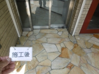 エントランスの石床洗浄