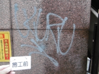 スプレーで落書きされた御影石のクリーニング